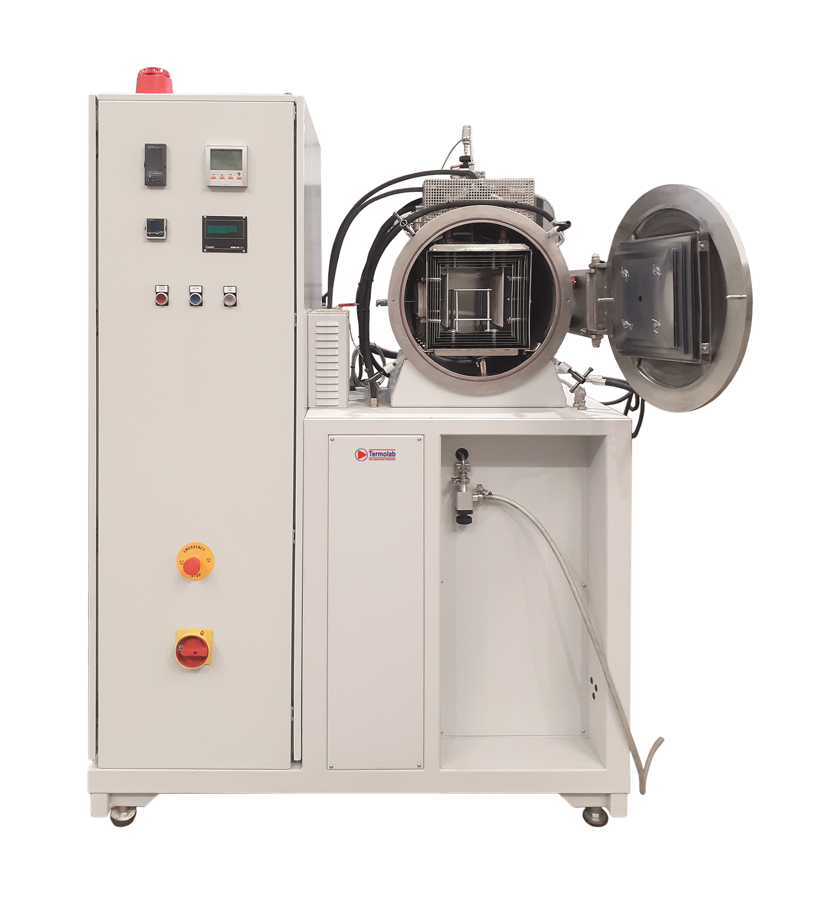 Elementos de aquecimento em molibdénio ou tungsténio e escudos de protecção contra a radiação nos mesmos materiais.